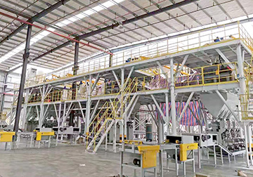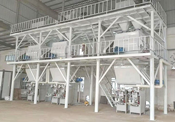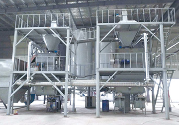5、當干混砂漿進入攪拌機后,在攪拌機推進端進行預攪拌,然后通過螺旋喂料機進行強制式定量輸出。